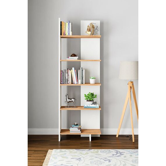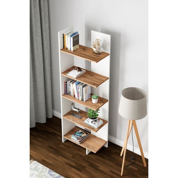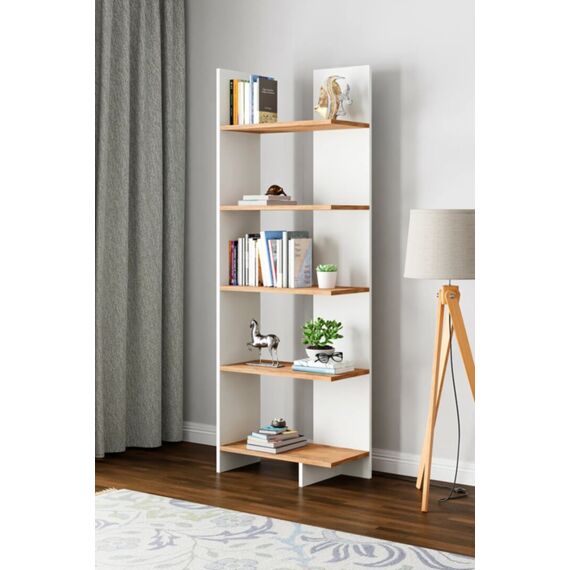 5 დონიანი წიგნების თარო თეთრი და ფიჭვის ფაქტურით KT3-BA (579)