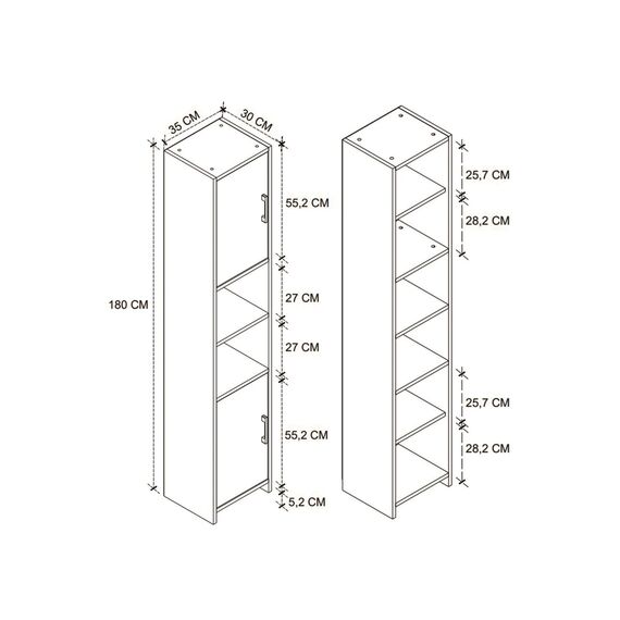 6 დონიანი მრავალფუნქციური თეთრი კარადა 180x35 (BF-784)