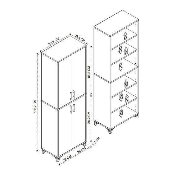 6 დონიანი მრავალფუნქციური კარადა 4 კარით ფიჭვის ფაქტურით (BF-777)