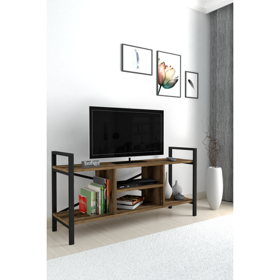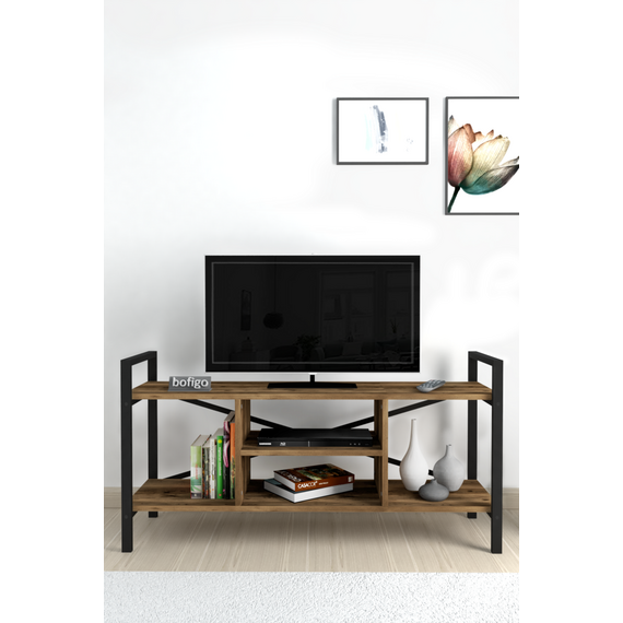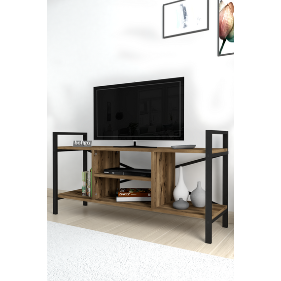 ტელევიზორის მაგიდა მეტალის კარკასით და მუქი ხის ფაქტურით (17)