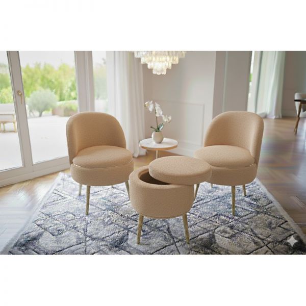 ორი სავარძელის და პუფის კომლექტი ბეჟი (MH1115)