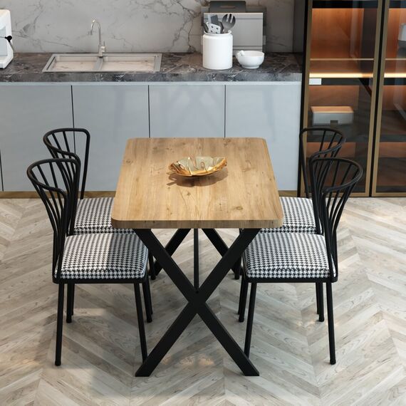 სამზარეულოს მაგიდა 4 სკამით ფიჭვის ფაქტურით (FD1021)