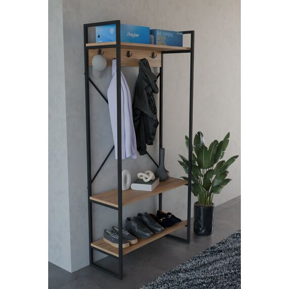 ტანსაცმლის საკიდი თაროებით ფიჭვის ფაქტურით (FD1001)