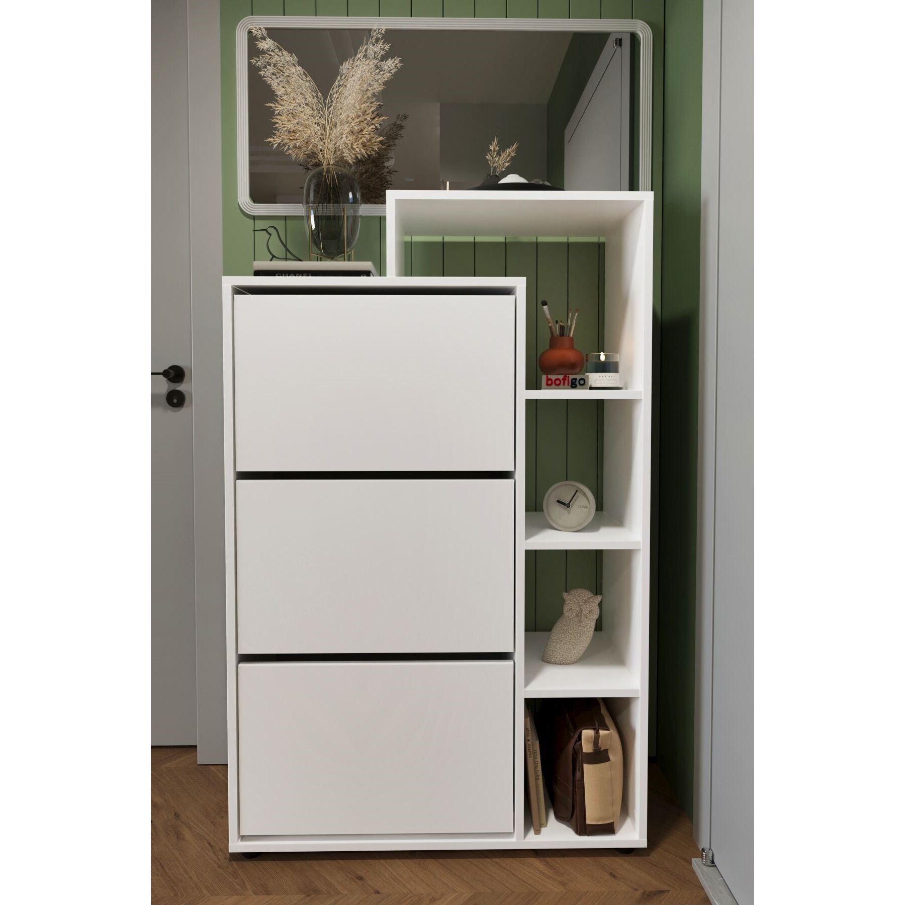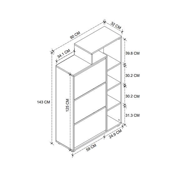 ფეხსაცმლის თეთრი კარადა თაროებით (BF993)