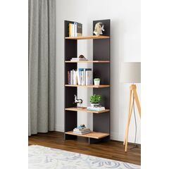 5 დონიანი წიგნების თარო შავი და ფიჭვის ფაქტურით KT3-GA (580)