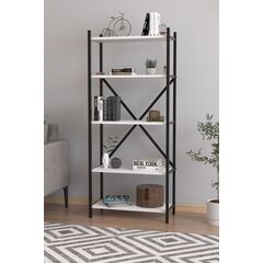 5 დონიანი წიგნების თარო თეთრი და ფიჭვის ფაქტურით KT3-BA (579)