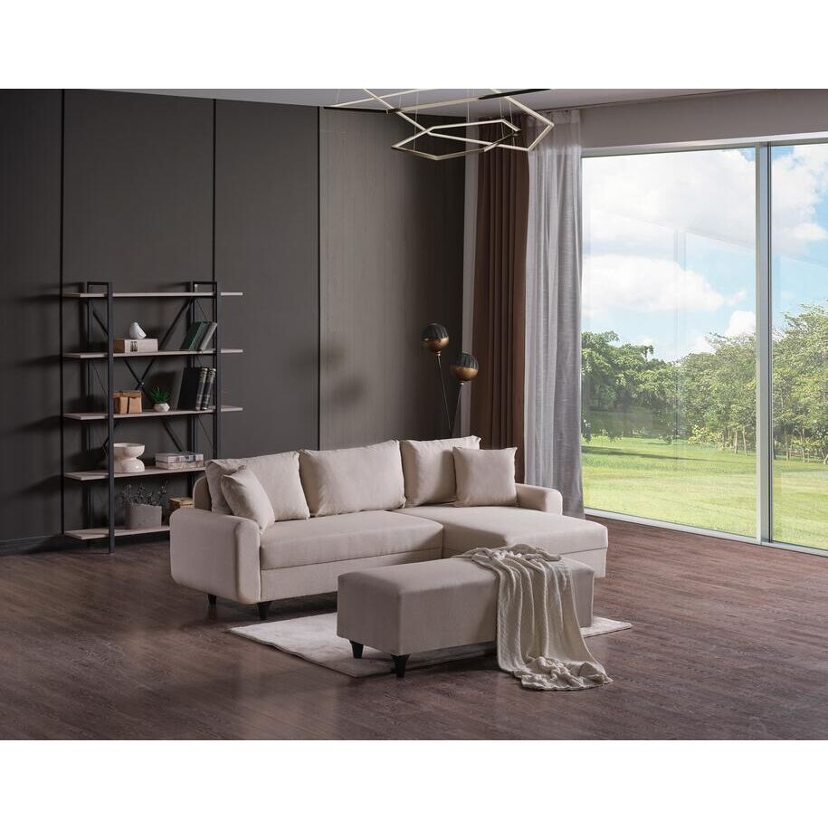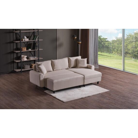კუთხის დივანი Flavia პუფით კრემისფერი (KG1081)
